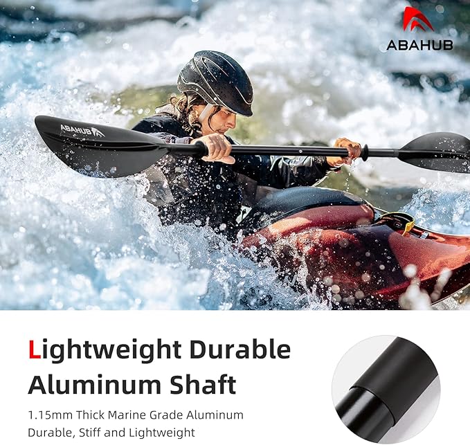 - MADE to LAST: Made of premium quality 1.15mm thick, 29mm diameter aluminum alloy shaft, and fiberglass reinforced polypropylene blades, total weighs 39oz (1100g). This kayak paddle is impact and erosion resistent, thus for great durability. It’s perfect for beginner and intermediate kayakers.