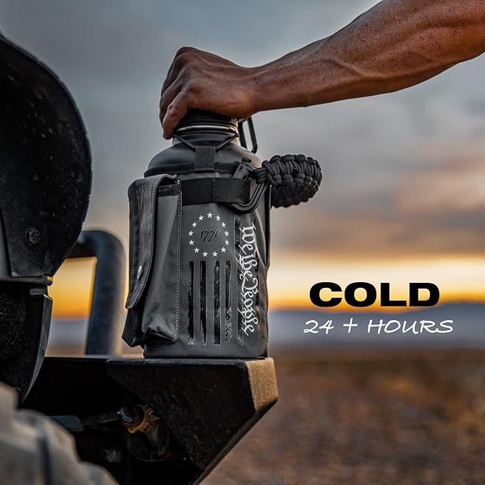 Iron Infidel Battle Bottle - Half Gallon Water Bottle Insulated, 64 oz Stainless Steel Water Jug with Paracord Handle - Gym Flask for Men with Rugged Sleeve for Storage (Betsy Ross 2 Liter)
