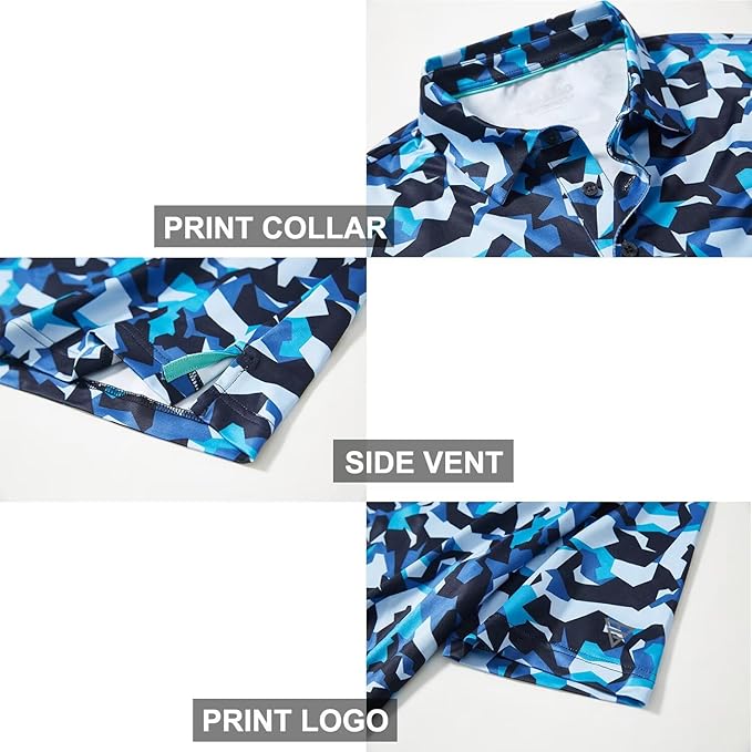 - STYLE FEATURE: This golf polo for men use allover print stretch fabric with easy care and keep good shape, well-made stitching.
