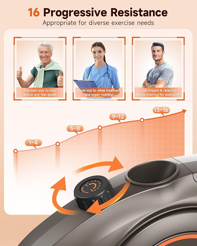 - 16-Level Progressive Resistance: Niceday Recumbent Bike offers 16 levels of progressive resistance, suitable for the diverse exercise needs of the whole family; The mechanical knob allows precise control of resistance changes, ensuring seamless transitions between intensity levels; Ideal for gentle physical therapy and relaxing cardio exercise