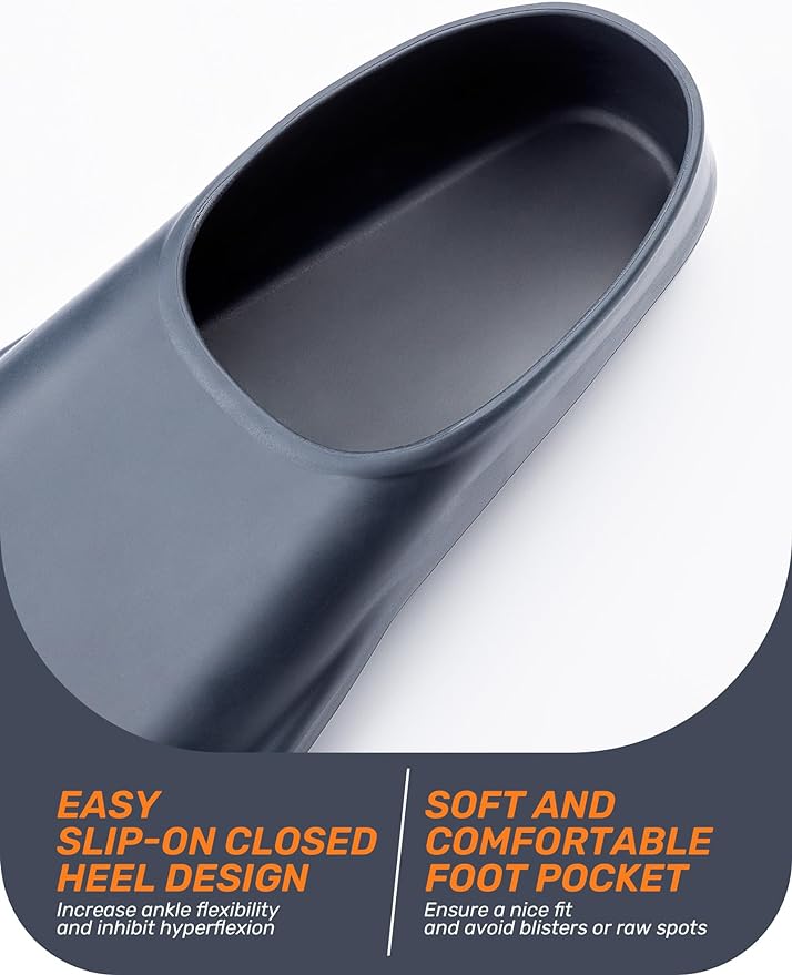 • Comfortable Fit - The foot pocket of the CAPAS swimming fins are made of soft rubber for a secure and comfortable fit. The closed heel design inhibits hyperflexion.