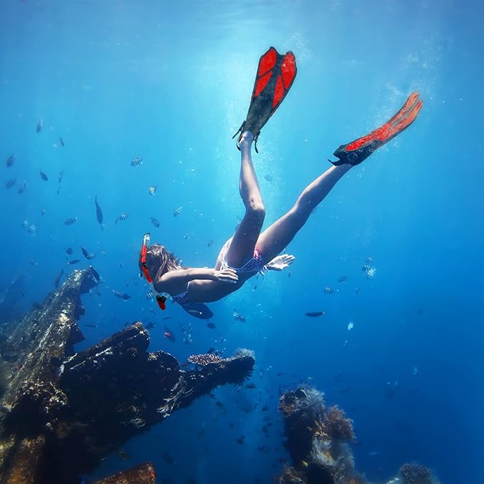 - Flexible adjustable trek fins: longer, lightweight and the responsive blade assure a kick that is fluid, effortless yet at the same time quite powerful. Trek fins with open-heel style & adjustable strap, the foot pocket and the strap are made of long-lasting rubber that ensures a comfortable fit. Please choose the appropriate fin size based on the size chart displayed. The zeeporte blade delivers excellent thrust with a modest kicking effort, perfect for your snorkeling or diving adventure.