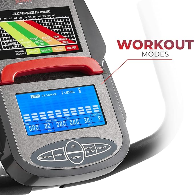 - 【 24 PRE-BUILT WORKOUT PROGRAMS 】 Choose from a variety of pre-programmed workouts for different fitness levels, including BMI calculation, target heart rate, and wattage tracking, for a comprehensive cardio machine experience.