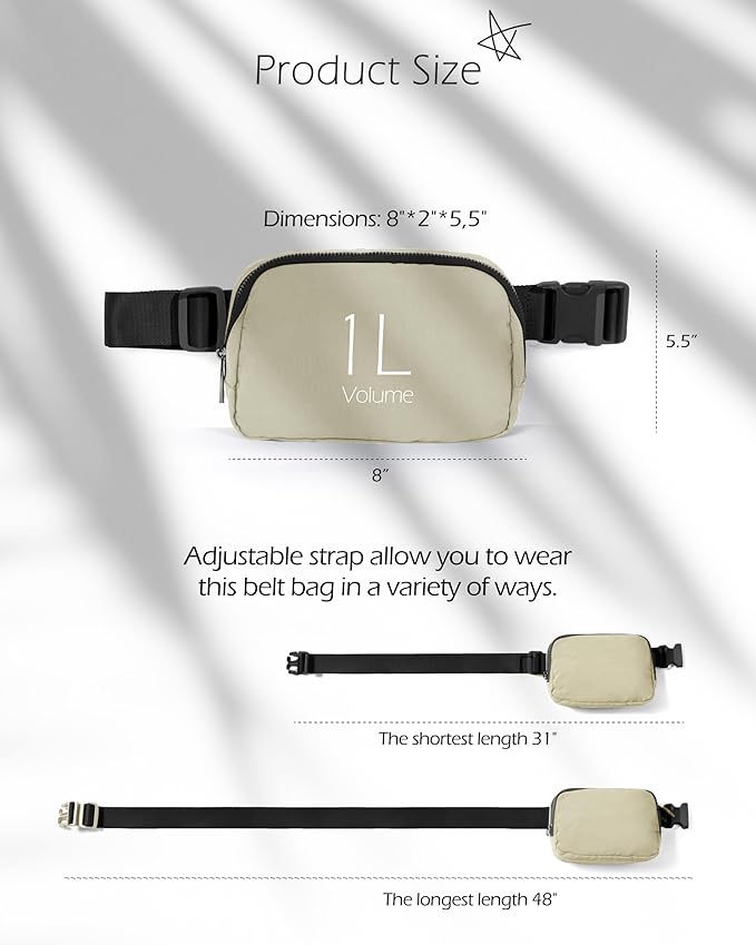 - Versatile Style: Adjustable Strap allow you to wear this belt bag in a variety of ways. It can be carried as cross bag, shoulder bag, waist bag or handbag. It’s all up to you.