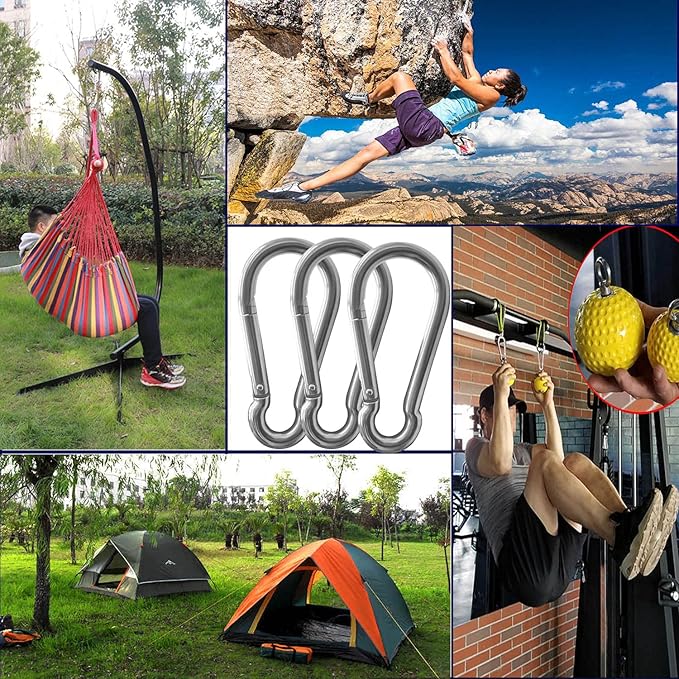 - WIDE USED IN HOME DIY PROJECT OR OUTDOOR: Heavy Duty Spring snap hooks perfect for hammock, fitness,swing set, gym, hiking, camping, indoor outdoor equipment gear; Also connecting items to a belt and any outdoor use versatile binding, rigging and anchoring hardware