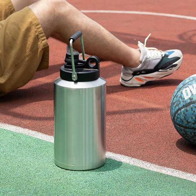 - 💧VACUUM INSULATED: Double layer vacuum insulated kettle, keeps the liquids icy for up to 48 hours or piping hot for up to 24 hours.This gallon water bottle is made of Powder-coat sweat-free technology, bottle grabbing becomes easy in time after strenuous exercise.