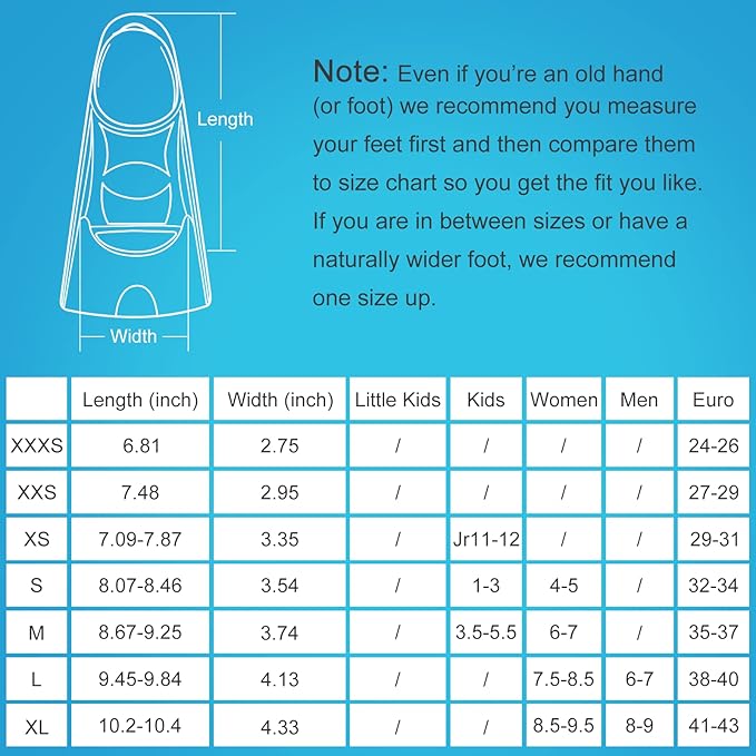 • Gintenco swim flippers are convenient for your trip. They don't take up much space. You can put it in your backpack or your suitcase. We hope that the size chart can help you choose to a great extent. For your safety, we recommend that you do not snorkel in the deep sea with these swimming fins