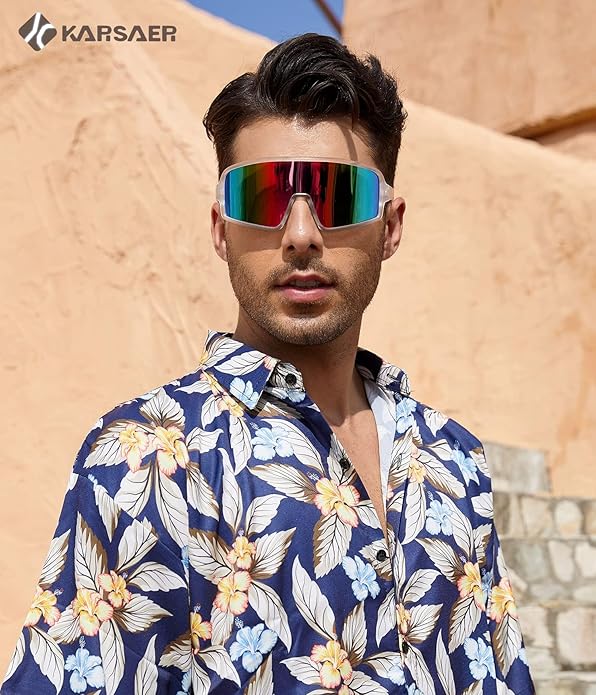 - COLORFUL MIRROR LENS: One-piece mirror lens is not only fashionable and cool but also filters out glare from sun reflections and protects eyes from long-term UV damage in the open air