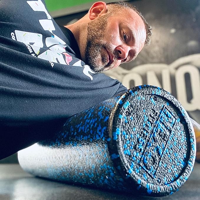 High-Density Round Foam Roller for Muscle Soreness Recovery, Exercise, Massage - 18", 24", 36" Blue Fleck (24 Inch)