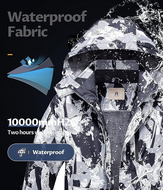 - ❄ Windproof--Men's snow jacket with elastic drawcord detachable hooded and hem help seal in warmth. Adjustable hook-and-loop closure cuffs provide custom fit with your gloves. High-quality SBS zipper is matched with windproof placket, perfectly locks the warmth.