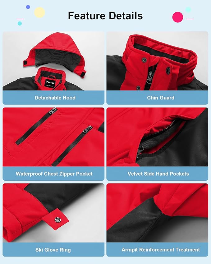 - ?�‚ Quality Details: 1. SBS smooth zipper. 2. helmet-compatible hood allows you to resist the cold wind during skiing, and will not let your kids' forehead get wet on rainy days. 3. 2 handwarmer zipper pockets and 2 chest zipper pocket can store keys, card and to prevent items from being lost in the snow. 4. well made and tailored with reinforced stitching.