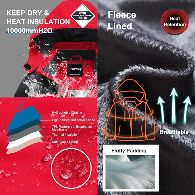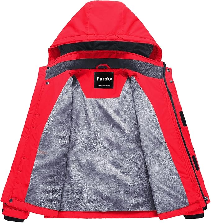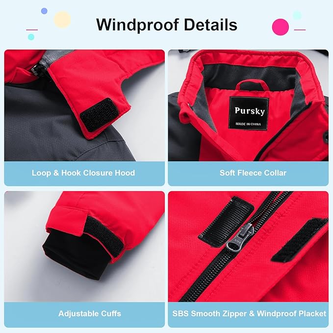 Pursky Boy's Waterproof Ski Jacket Kids Winter Snow Coats Fleece Raincoats Parka