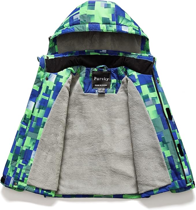 Pursky Boy's Waterproof Ski Jacket Kids Winter Snow Coats Fleece Raincoats Parka