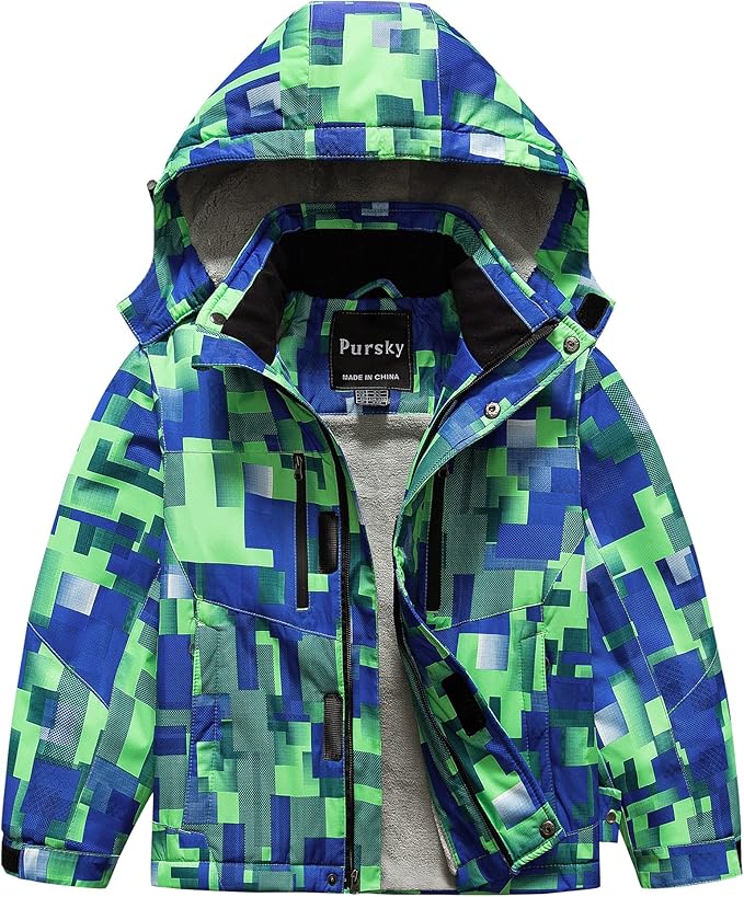 Pursky Boy's Waterproof Ski Jacket Kids Winter Snow Coats Fleece Raincoats Parka