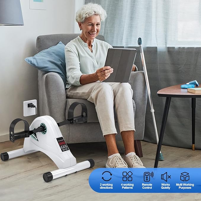 - 👍ERGONOMIC DESIGN & MULTIPLE OPTIONS - This mini electric exercise bike offers multiple options to meet your needs: motorized or manual assisted pedaling, forward and backward. It features ergonomic adjustable pedals, which allow its use both for feet and hands