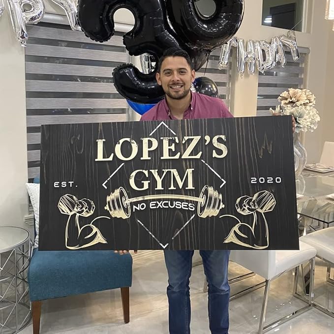 - Perfect Gift - Surprise them on their birthdays, Business and Housewarming; Perfect for Him, athletes, enthusiasts, Friends, Gym Owners. Make it personal by adding family or business name and Hang it on your Wall, Home Gym, Door, Workout Room, Entrance .