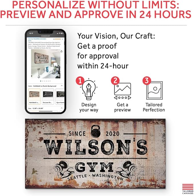 - You get a Preview with a Lifetime Warranty - Check your Personalized Gym Sign Wall Art Decor sent by our Quality Control Team within a day via Amazon Messaging; Love it or We'll make it right for you, no questions asked! Click "Customized Now" & Lets turn your Ideas into Reality!