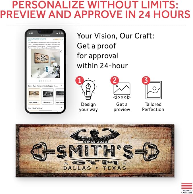 - You get a Preview with a Lifetime Warranty - Check your Personalized Gym Sign Wall Art Decor sent by our Quality Control Team within a day via Amazon Messaging; Love it or We'll make it right for you, no questions asked! Click "Customized Now" & Lets turn your Ideas into Reality!