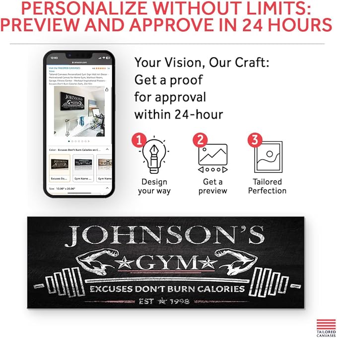 - You get a Preview with a Lifetime Warranty - Check your Personalized Gym Sign Wall Art Decor sent by our Quality Control Team within a day via Amazon Messaging; Love it or We'll make it right for you, no questions asked! Click "Customized Now" & Lets turn your Ideas into Reality!