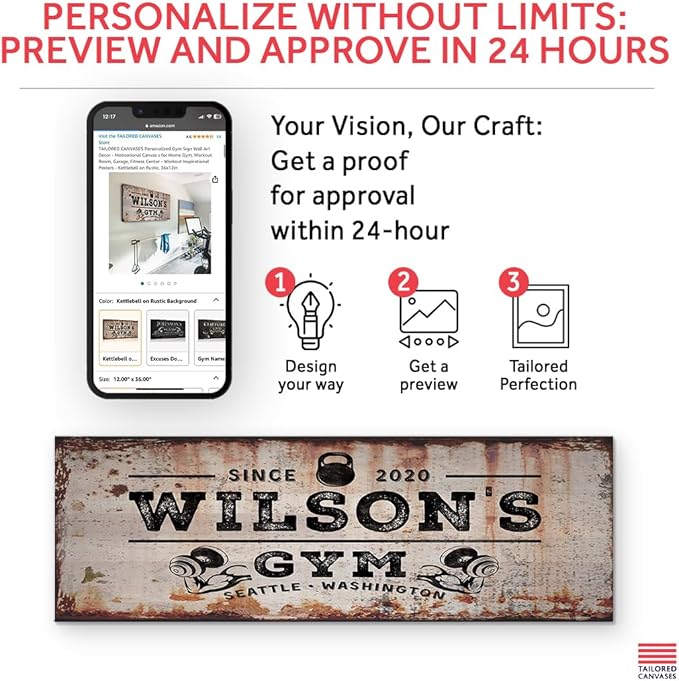 - You get a Preview with a Lifetime Warranty - Check your Personalized Gym Sign Wall Art Decor sent by our Quality Control Team within a day via Amazon Messaging; Love it or We'll make it right for you, no questions asked! Click "Customized Now" & Lets turn your Ideas into Reality!
