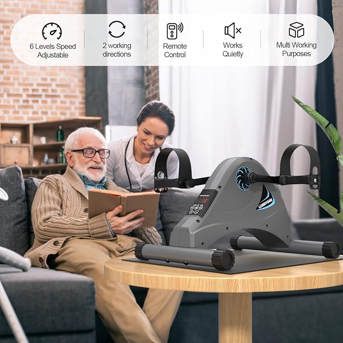 - 👍Update Smooth & Quiet Pedal Exerciser - LUBBYGIM electric pedal exerciser is used to strengthen arms and legs muscles, which is great for improving sedentary body tension, blood circulation, physical therapy and muscle relaxation. Extremly Smooth and quiet electric driven system allows you to do exercise while you are on phone, watching TV, working or playing video games