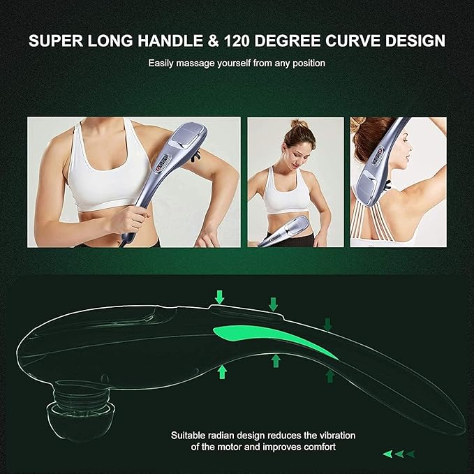 - 💞Mega Performance & Design💞 Back massager is designed for a powerful and quiet massage experience. Its advanced 3,600rpm motor can penetrate up to 8mm below the skin while running quietly, and its noise reduction technology makes the experience even quieter than most competitors. The ergonomically designed handle provides a comfortable grip and accommodates the natural curvature of the human spine. Each piece undergoes quality testing before shipping to ensure its maximum quality.