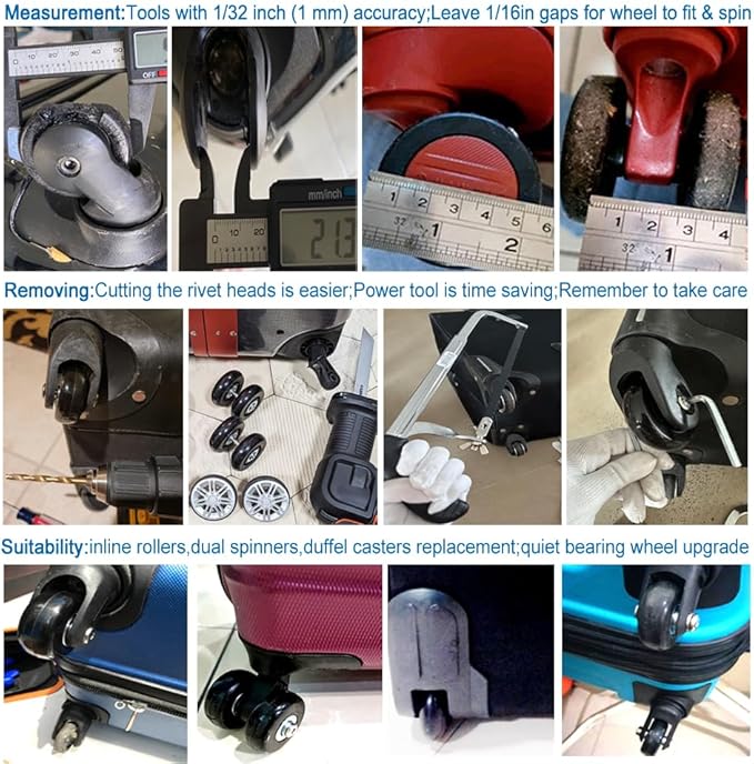 - 【Fit Most Luggage Bags】Suitable for Most Luggage suitcase/Trolley case/Duffle bag/Drawbar box with Damaged Wheels/Jammed Roller/Rubber Worn Caster.No Need to Buy a New One,Just Replace the Old Wheels at Home with This Full-set Replacement kit.