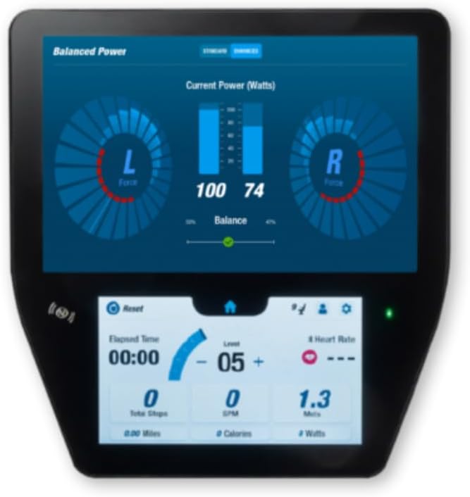 - Integrated sensor technology captures and displays power and symmetry data in real time. The dual-touchscreen console features a HD display and an intuitive user interface with engaging workout programs and easy-to-track metrics.