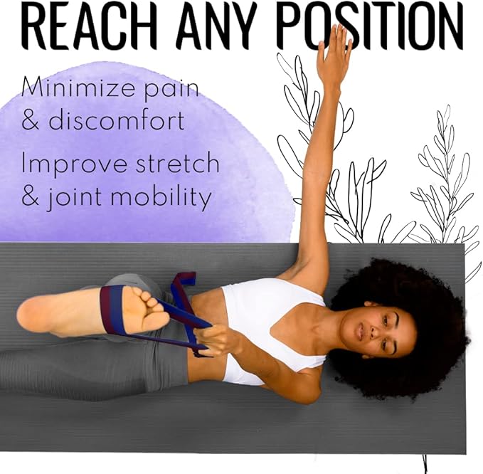 - SELF-CARE. Classic yoga strap helps to increase resistance and decrease tension while stretching, thus to achieve deeper stretch without harming one’s ligaments and muscle tissue. It aids to improve posture, balance, flexibility and joint mobility. The band is easy to adjust and secure in place, so that you can reach any position or asana steadily, consciously and with self-love. Widely used for yoga, pilates, physical therapy, post-injury rehabilitation, exercising and more.