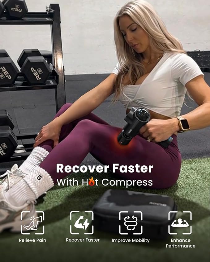RENPHO Thermacool Massage Gun Deep Tissue with Heat and Cold Head, Handheld Muscle Massager with Carry Case, Percussion Body Muscle Masajeador for Men Women Athletes, Active