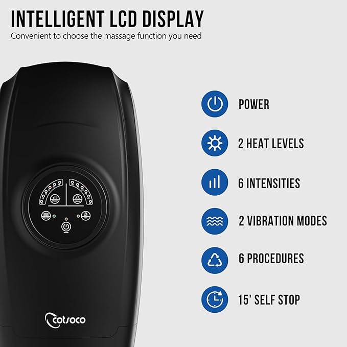 - OPTIONAL VIBRATION & HEAT SOOTHING: The Cotsoco Thermal Compression Hand Massager is available in pulsed and continuous vibration modes, as well as optional heat, which helps keep hands warm and moist, improves blood circulation, and reduces hand discomfort and cold palms.