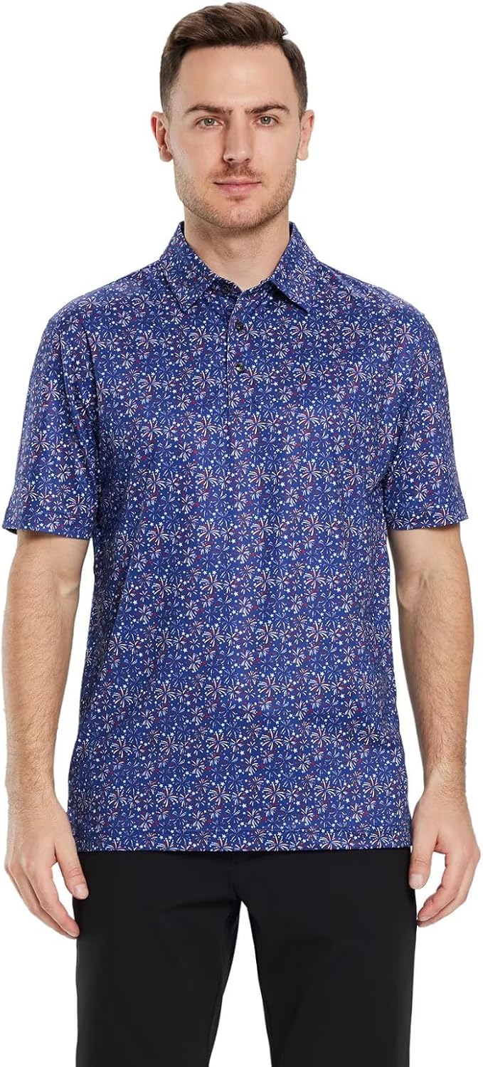 - STYLE FEATURE: This golf polos for men use allover print stretch fabric with easy care and keep good shape, well-made stitching.
