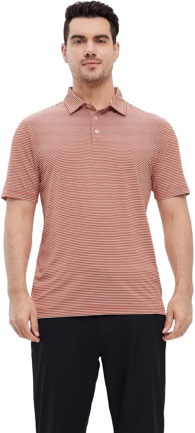 Mens Golf Shirt Moisture Wicking Dry Fit Performance Sport Short Sleeve Striped Golf Polo Shirts for Men