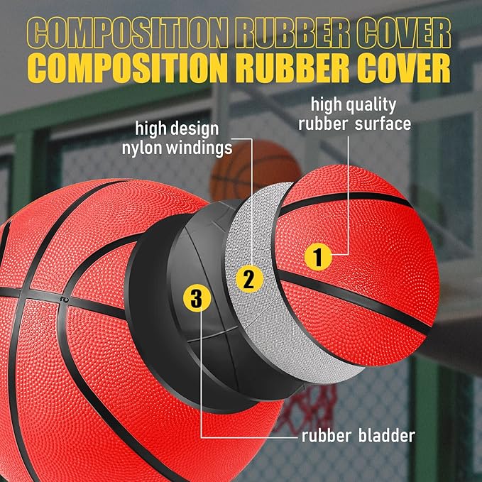 - Size 7 Basketballs: these rubber basketballs measure an official size 7, about 29.5 inches/ 75 cm in perimeter and 9.84 inches/ 25 cm in diameter, a suitable size for men, women and youths above 12 years old, nice for both indoor and outdoor playing, lightweight and easy to grab, providing you with better sports experience