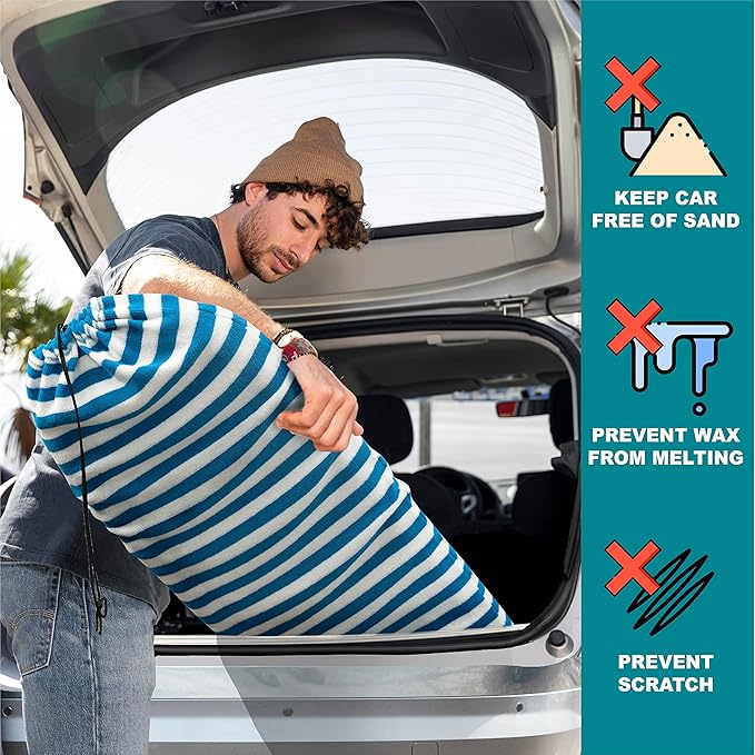 - SURFBOARD SOCK COVER to protect your surfboard and SUP from dings during transport and uv sunlight that causes surf board to yellow. Provides extra protection inside any travel bags or in storage. Can be conveniently folded for easy storage in a backpack or car, making this idea for any surf session, travel, and beach outing.