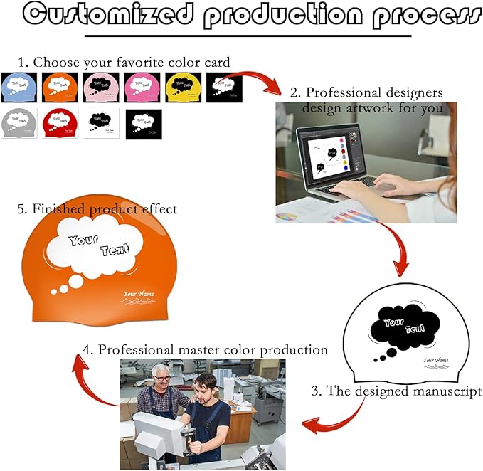 - Excellent Design: We redesigned the contour of the personalized swim cap according to ergonomics. This customized swim cap for swimming is designed with a precision fit to reduce resistance and tear resistance.