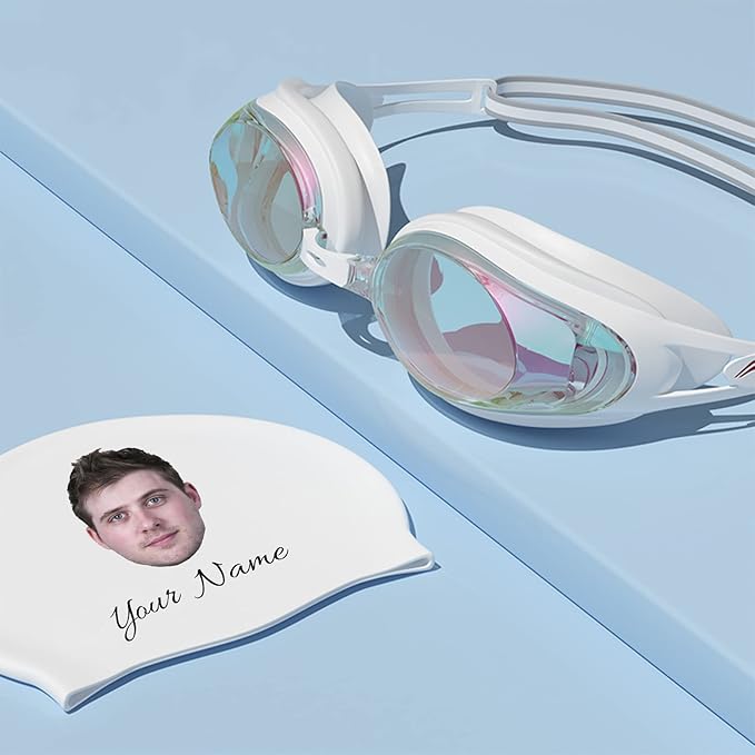 Custom Swim Cap with Photo Personalized Silicone Swim Cap for Men and Women Swimming Customized Swimmers Cap for Short and Medium Length Hair