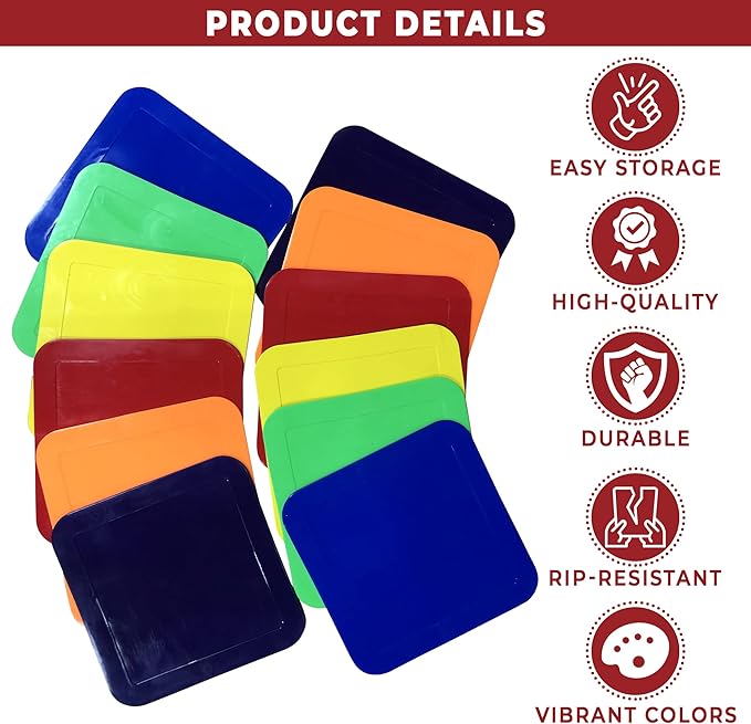 9 Inch Square Poly Vinyl Spot Markers – Training Drills with School Gyms, Sports Teams, Track and Field, Basketball, Football, Soccer, Baseball, Preschool, Kindergarten – Set of 12