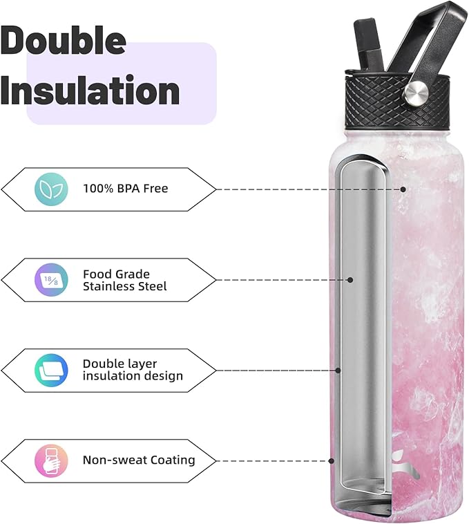 - Enjoy a dry grip without any unwanted condensation on the bottle's non-sweat surface. Easy-to-carry design makes it perfect for on-the-go use, the insulated water bottle with straw is a must-have for your daily routine
