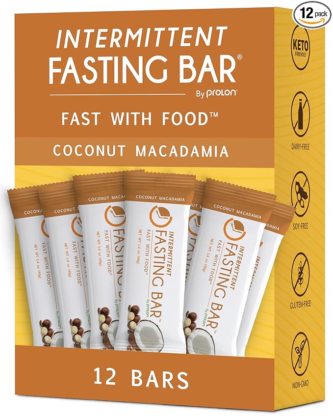 - Fast with Food: Prolon Intermittent Fasting Bars nourishes your body while maintaining its fasting state, ideal for morning intermittent fasting for women and men or as a late-night snack. Its proprietary formula with premium ingredients, including macadamia nuts, doesn't trigger your body's nutrient sensing system, keeping blood glucose levels stable and ketones in a fasting state.
