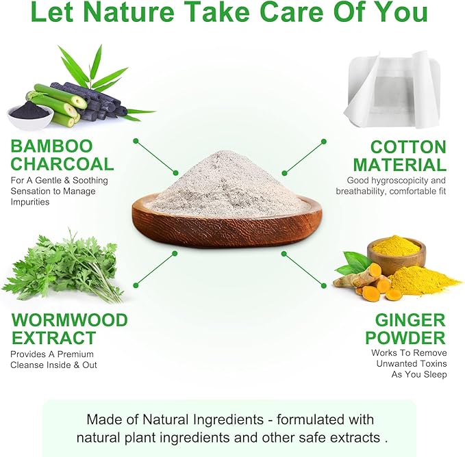 - Natural Ingredients: The main ingredients of 2-in-1 Foot Pads - ginger powder, bamboo vinegar powder.