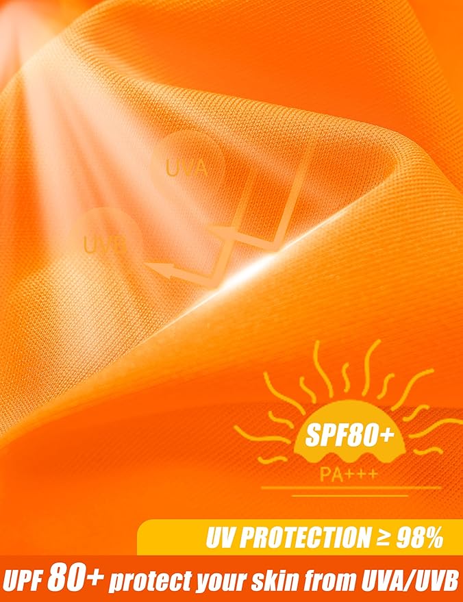 • UV Protection: The UPF 80+ fabric protects your skin from the harmful UVA/UVB rays, keeping you cool and active in the direct sunlight.