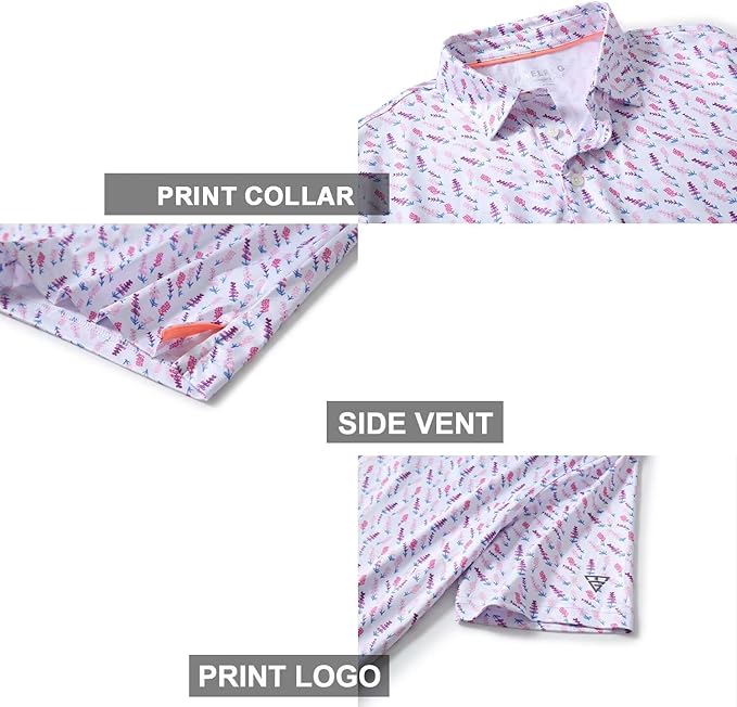 • STYLE FEATURE: This golf polo for men use allover print stretch fabric with easy care and keep good shape, well-made stitching.