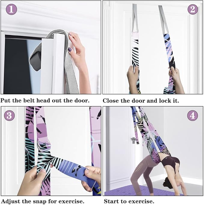 - 1)IMPROVE YOUR HEALTH - Door Flexibility & Stretching Leg Strap increase your flexibility and stretch yourself easier and safer. The stretch strap easily to use and with soft cushions takes care of your waist, hands and feet, allows you to improve your stretching or yoga skills and makes you feel and look younger