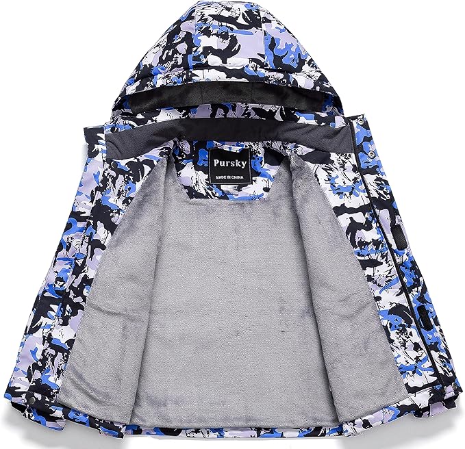 Pursky Boy's Waterproof Ski Jacket Kids Winter Snow Coats Fleece Raincoats Parka