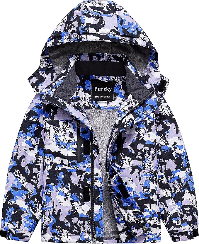 Pursky Boy's Waterproof Ski Jacket Kids Winter Snow Coats Fleece Raincoats Parka