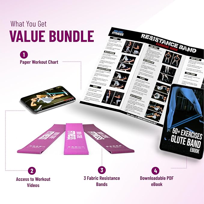 - Great Value: These pink colored hip resistance bands come with a paper workout chart, a full workout ebook, and access to workout videos to demonstrate how to effectively use them in various ways.