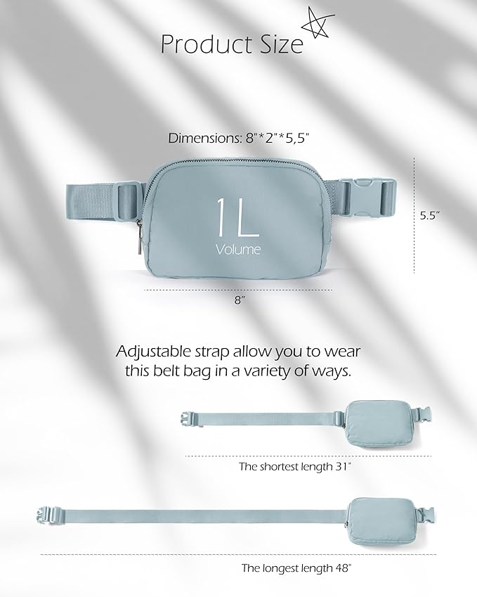 - Versatile Style: Adjustable Strap allow you to wear this belt bag in a variety of ways. It can be carried as cross bag, shoulder bag, waist bag or handbag. It’s all up to you.