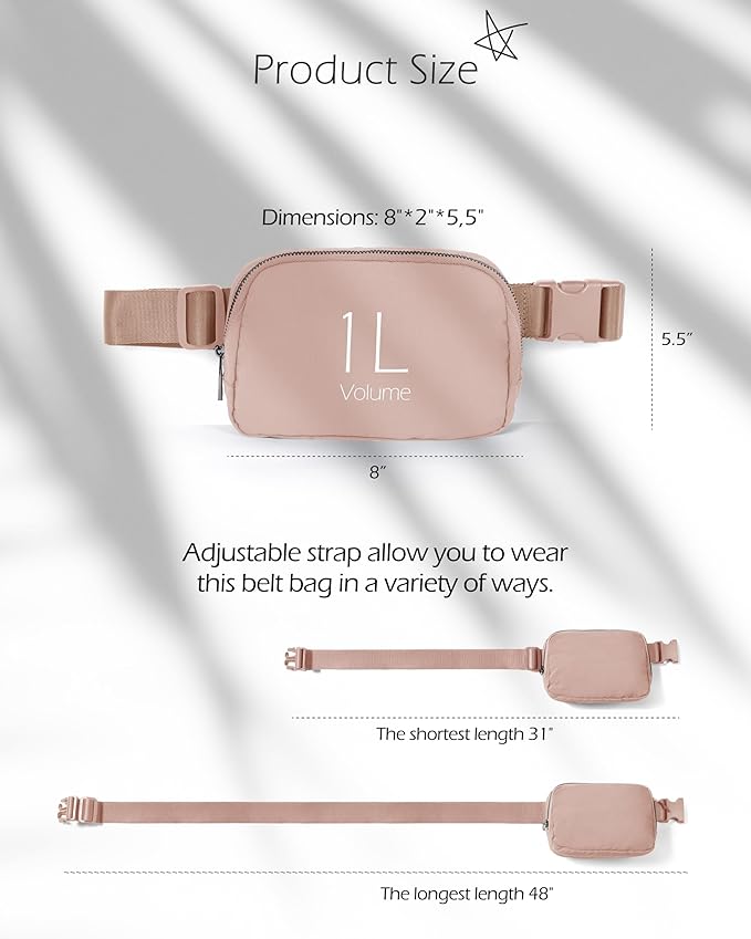 - Versatile Style: Adjustable Strap allow you to wear this belt bag in a variety of ways. It can be carried as cross bag, shoulder bag, waist bag or handbag. It’s all up to you.
