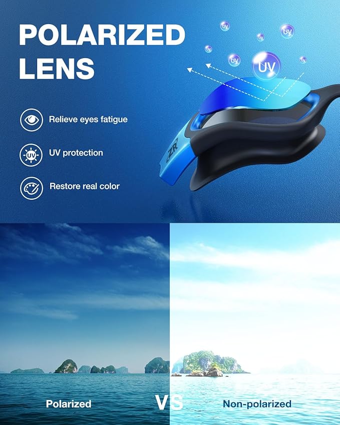 - Special Polarized Swim Goggles - ZIONOR swimming goggles featured with polarized lens, provides better eyes protection against harmful UV rays and lights, restore true color, eliminate reflected light and scattered light, for outdoor swimming, surfing, kayaking and other water related sports. ZIONOR upgrades with brighter lens which can benifit from the polarized function, making it not only for outdoor swimming, but also perfect for indoor swimming